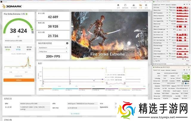 在3DMark测试中,RTX 5080 AMP EXTREME在2K和4K分辨率下均展现出了出色的性能。在Fire Strike Extreme测试中,其图形分数达到了42689分,核心温度最高为71℃,运行频率高达2947MHz。在Time Spy测试中,其2K分辨率下的图形分数为33554分,核心运行频率同样高达2947MHz。