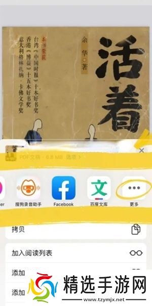 第三步:点击中间的分享的功能,也可以通过其他的app进行阅读。