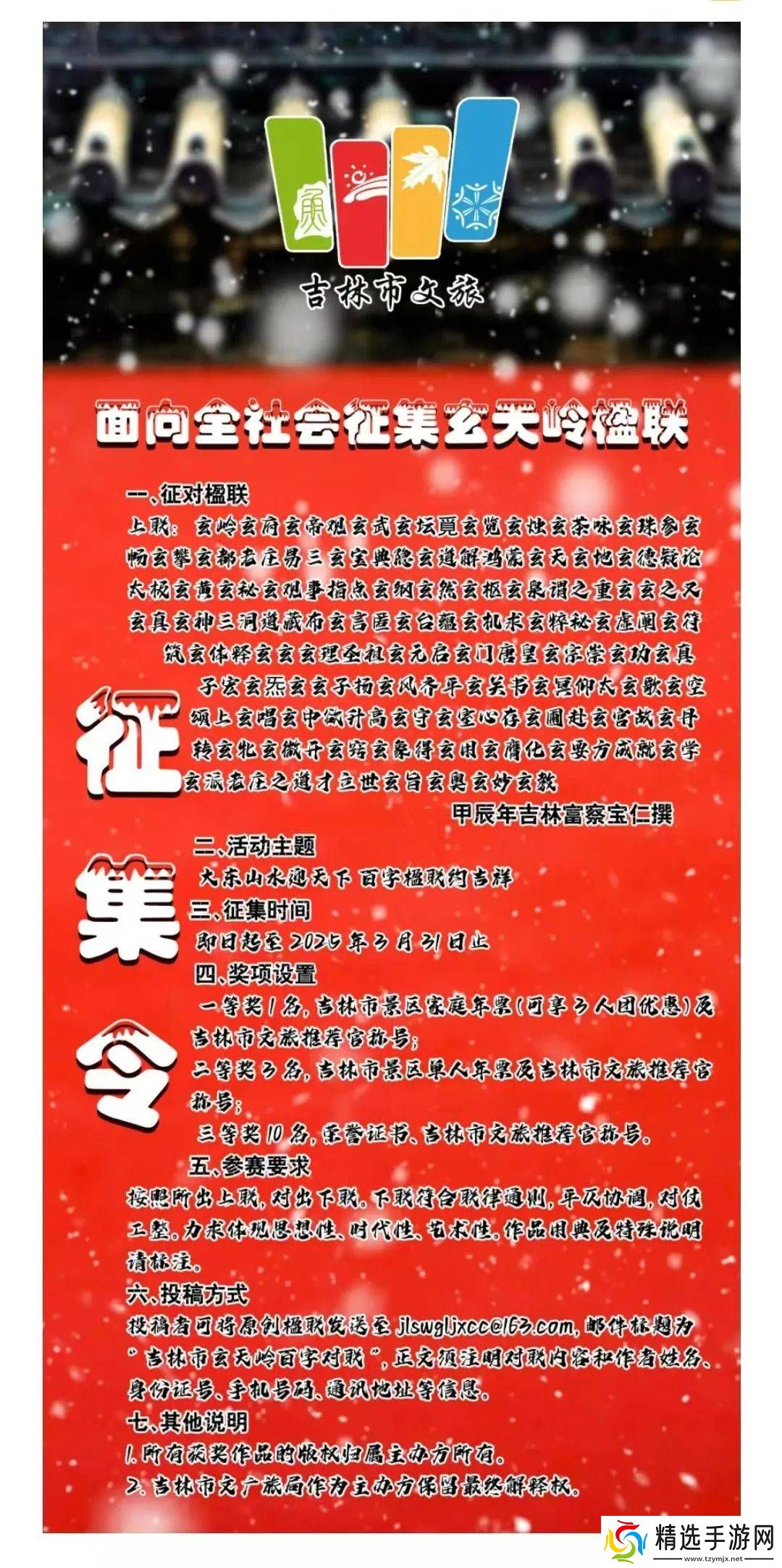 主办方还温馨提示广大创作者,本次征集活动将于3月31日截止,请有意参与者抓紧时间投稿。同时,所有获奖作品的版权将归属主办方所有,吉林市文广旅局作为主办方保留最终解释权。