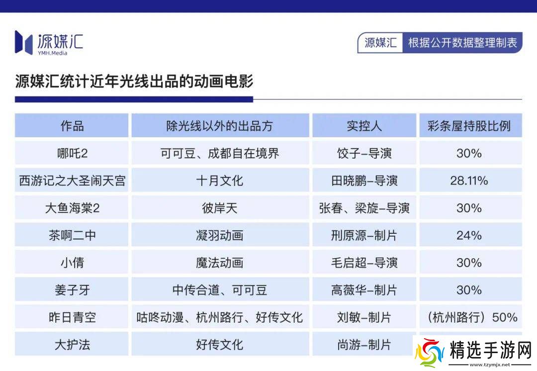 光线传媒在动画电影领域的坚持与策略,成为了其成功的关键。自2013年投资《大鱼海棠》的制作公司“彼岸天”以来,光线便逐步将动画电影作为业务布局的重点。通过挖掘和培养新锐导演如田晓鹏、饺子等,光线建立了自己的动画厂牌“彩条屋”,并与这些导演形成了紧密的合作关系。这种“光线+彩条屋+导演个人公司”的模式,不仅确保了项目的独家掌控权,也为导演个人带来了可观的收益。