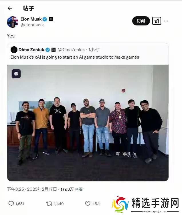紧接着,这一消息得到了马斯克本人的确认。他在转发了Dima Zeniuk的帖文后,简短有力地回复了一个“是的”,瞬间点燃了网友们对于xAI游戏工作室的无限遐想。